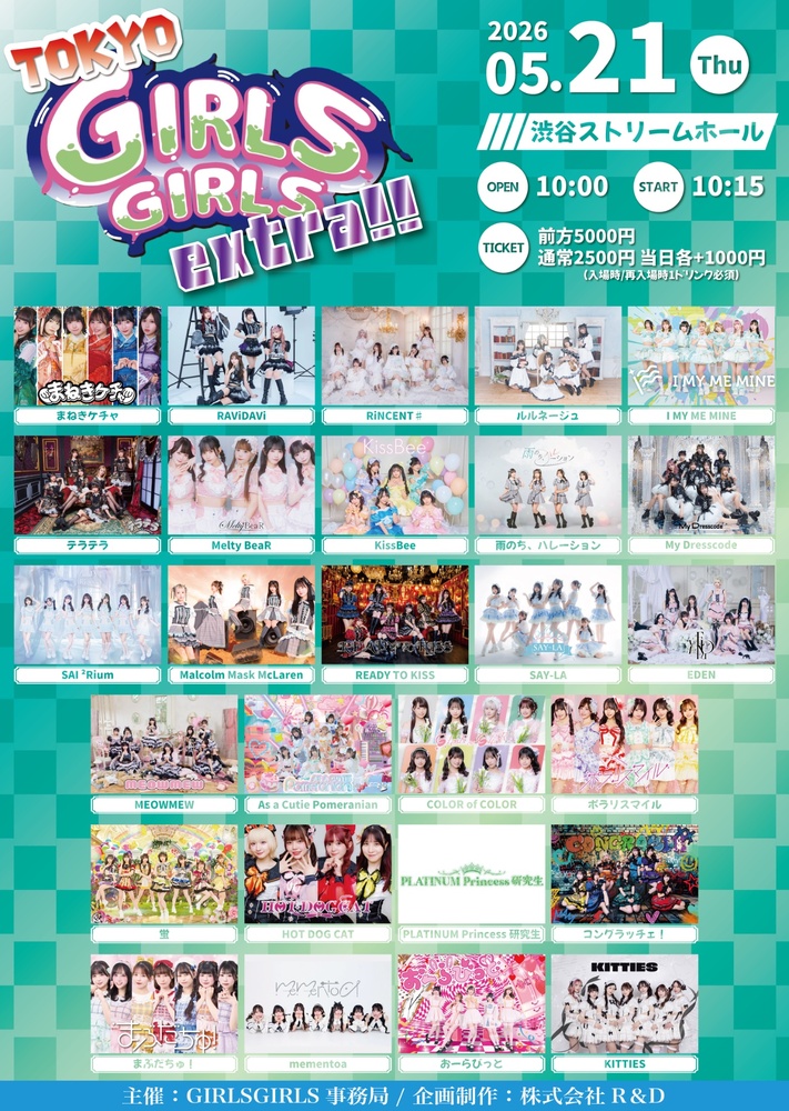 TOKYO GIRLS GIRLS extra!! SCHEDULE 2026/05/21(木) 5/21(木) 渋谷ストリームホール TOKYO GIRLS GIRLS extra!! OPEN10:00/START10:30 抽選販売中☑️ https://ticketdive.com/event/tgg__0521 URLをコピーする 報告する