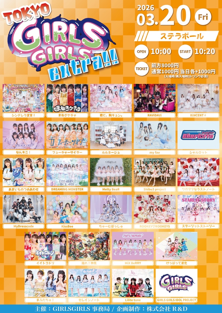 TOKYO GIRLS GIRLS extra!! SCHEDULE 2026/03/20(金) 3/20(金祝) 品川ステラボール TOKYO GIRLS GIRLS extra!! OPEN10:00/START10:20 前方抽選 販売中☑️ https://ticketdive.com/event/tgg__0320 URLをコピーする 報告する